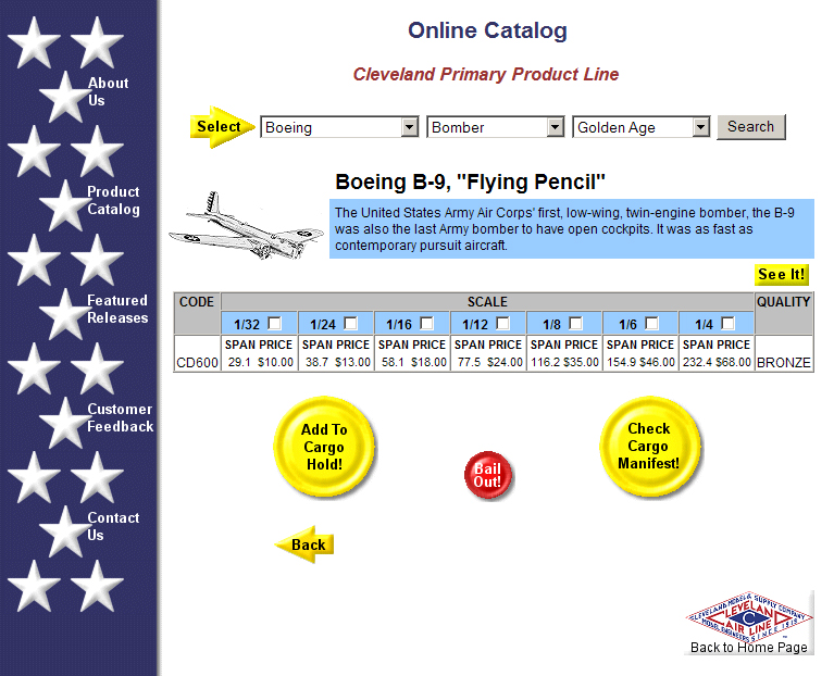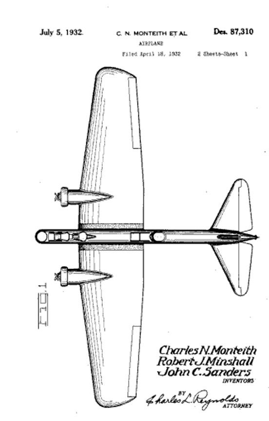 Patent Diagrams for the Boeing Model 215 and Predecessor Left Two: Model 215 Design Patent Design Patent D-87,310 Right Two: Monomail Design Patent Design Patent D-91,327 Click to Enlarge Click Here to learn how to get free patent diagrams The narrow profile of the fuselage earned the Model 247 the nickname "Flying Pencil." The Cleveland model airplane company made a contemporaneous detailed scale model kit of the Boeing 247. Boeing Boeing Model 215 (B-9) at the Cleveland Site You can buy the plans and patterns that will enable you to make this model right now. Click Here to go to the exact location on the Cleveland Website to get them. Click to go back and select another cover. | |||||||