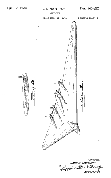 Patent Diagrams for the Northrop XB-35 Design Patent D-143,852 Click to Enlarge Click Here to learn how to get free patent diagrams Here is a video about the XB-35 that combines stock footage with animation. The XB-35 was plagued by mechanical problems of a fairly minor but embarassing nature. Political considerations played a role in the selection of the B-36 (which was almost the diametric opposite of the XB-35) as America's strategic bomber for the Post-WWII era. CENTER>