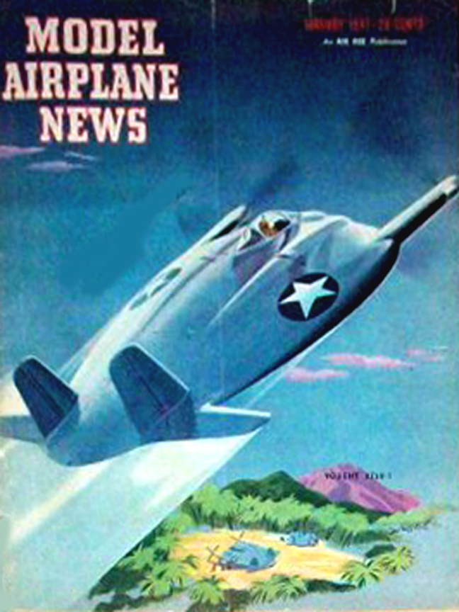Model Airplane News January, 1947 Vought XF5U "Flying Flapjack" Model Airplane News Cover Art for January, 1947 by Jo Kotula Click to Enlarge The Vought XF5U "Flying Flapjack" was an experimental U.S. Navy fighter aircraft designed by Charles H. Zimmerman during World War II. This unorthodox design consisted of a flat, somewhat disc shaped body ("discoidal") serving as the lifting surface. Two piston engines buried in the body drove propellers located on the leading edge at the wingtips. The F5U was a "developed" version of the original wood-and-canvas V-173 prototype.