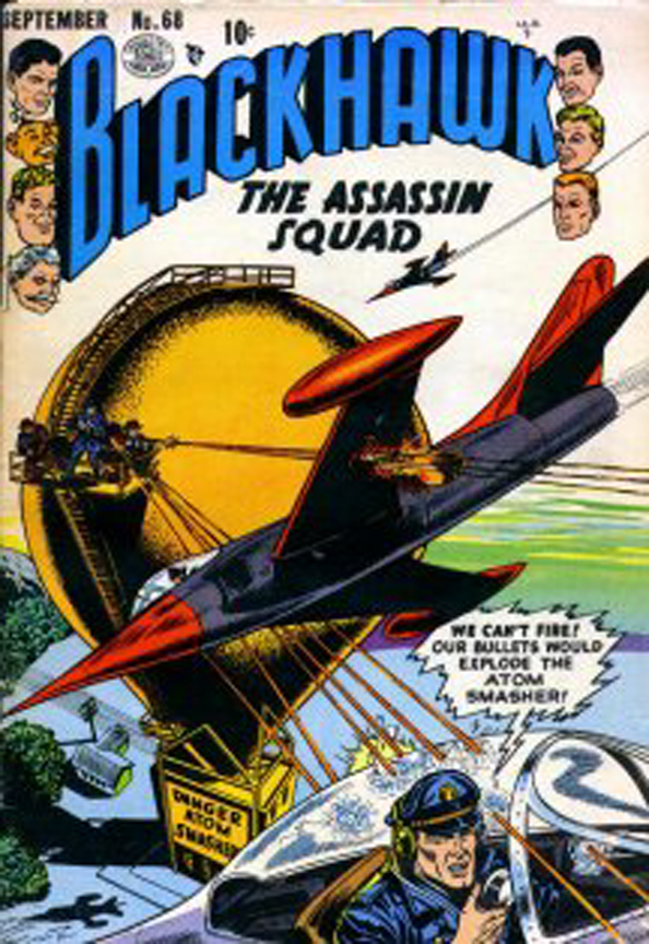 Lockheed XF-90 Click to Enlarge After a redesign from its original delta planform, the Lockheed Model 90 was built as a mock-up in 1947. The final design featured sweptback wings, a sharply-pointed nose and two turbojet engines, providing a total thrust of 6,200 lbf,mounted side-by-side in the rear fuselage and fed by side-mounted air intakes. The wings had leading-edge slats and ailerons on the trailing edge. The pressurized cockpit was fitted with an ejector seat and a bubble canopy. Proposed armament was six 20 mm cannons. The use of heavy gauge aluminum, along with heavy forgings and machined parts, resulted in an extremely well-constructed and sturdy airframe. However, these innovations also resulted in an aircraft which had an empty weight more than 50 percent heavier than its competitors. The XF-90 was the first USAF jet with an afterburner and the first Lockheed jet to fly supersonic. It also incorporated an unusual vertical stabilizer that could be moved forward and backward for horizontal stabilizer adjustment. Because Lockheed's design proved underpowered, McDonnell's XF-88 won the production contract in September 1950. one prototype survived three atomic blasts at Frenchman Flat within the Nevada Test Site in 1952. In 2003, the heavily damaged hulk was recovered from the Nevada test site and moved to the National Museum of the United States Air Force in Dayton, Ohio. It is currently undergoing minor restoration in one of the Museum's restoration facility hangars. Its wings have been removed, and its nose is mangled from the nuclear blasts. During the decontamination process, all the rivets had to be removed to remove radioactive sand. At present, the museum plans to display the XF-90 in its damaged, mostly unrestored condition, to demonstrate the effects of nuclear weaponry The XF-90 lived on in popular culture as the aircraft of the Blackhawks comic book. (The Blackhawks began their career flying the Grumman Skyrocket another failed design. The Blackhawks apparently picked flshy planes with poor performance. In addition to the cover of Model Airplane News, this airplane was also featured in the WINGS "Friend or Foe" trading card series of the early 1950s Trading card representation of the Lockheed XF-90 Click Here to see all 200 cards in the series Click to Enlarge Click Here for more information about the Lockheed XF-90. Click to go back and select another cover. | |||||||