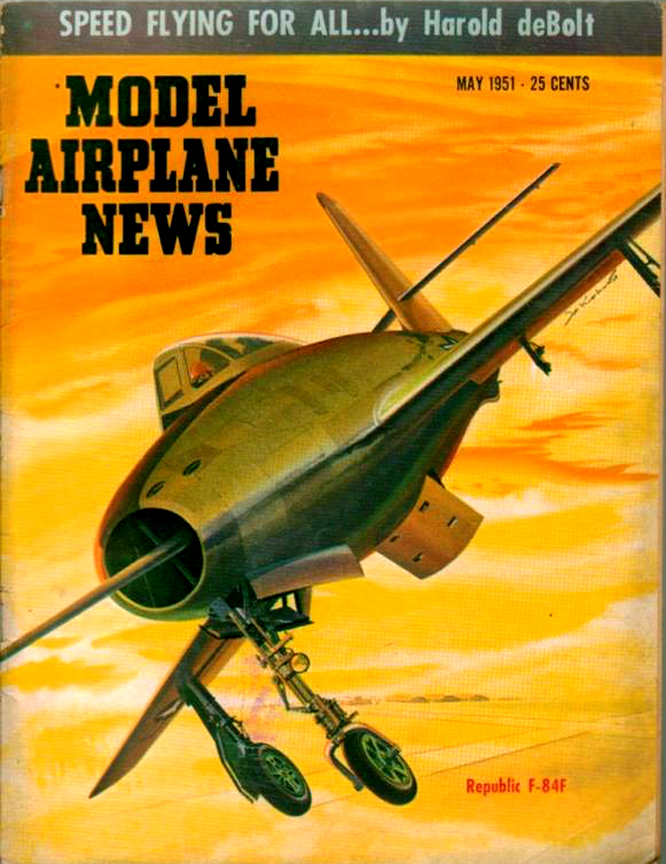 Model Airplane News May, 1951 Republic F84-f "Thunderstreak" Model Airplane News Cover Art for May, 1951 by Jo Kotula Click to Enlarge The Republic F-84F Thunderstreak was an American-built swept-wing turbojet fighter-bomber. It was an evolutionary development of the straight-wing F-84 Thunderjet, incorporating many new features. The RF-84F Thunderflash was a photo reconnaissance version.