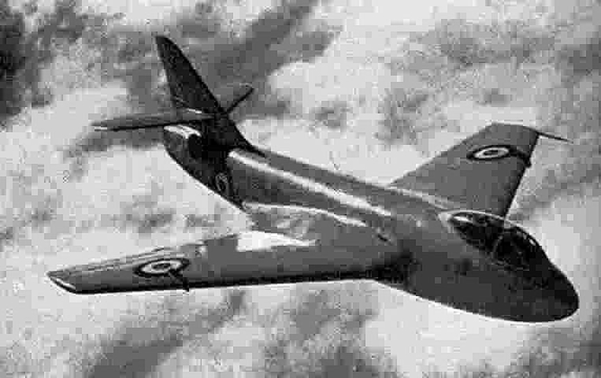Photos of the Hawker P.1081 "Australian" Click to Enlarge Photos of the Hawker "Hunter" Click to Enlarge Here is a video of the 1950 Farnborough Air Show -- it includes a flyby of the P.1081. In addition to the cover of Model Airplane News, this airplane was also featured in the WINGS "Friend or Foe" trading card series of the early 1950s Trading card representation of the Hawker P.1081 "Australian" Click Here to see all 200 cards in the series Click to Enlarge Click Here for more information about the Hawker P.1081 "Australian". Click to go back and select another cover. | |||||||