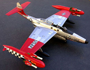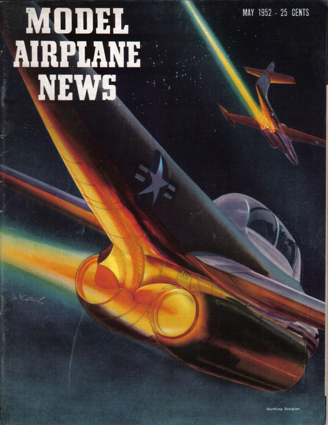 Model Airplane News May, 1952 Northrop F-89 "Scorpion" Model Airplane News Cover Art for May, 1952 by Jo Kotula Click to Enlarge The Northrop F-89 Scorpion was an early American jet-powered fighter designed from the outset as an all-weather interceptor. Though its straight wings limited its performance, it was among the first USAF jet fighters equipped to fire guided missiles, including the distinction of being the first combat aircraft armed with nuclear weapons (the unguided Genie rocket) for air-to-air use.