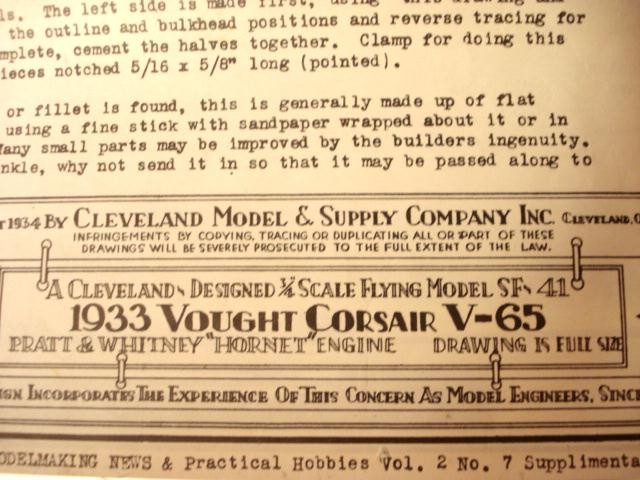 Vought O2U "Corsair" Land, Carriers, Cruisers Click to Enlarge The Vought Corsair (designated O2U-1) became one of the most useful and versatile military airplanes ever produced. The Corsair was among the first to have an all-steel-tube fuselage with a round cross-section; although t was initially used as an observation aircraft, it quickly proved to be successful in a wide variety of combat roles. The O2U could be easily converted from fixed gear, to float-plane or to amphibian. It could be operated from shore, from carriers or catapult-launched from cruisers or battleships. Tt won immediate favor with the fleet and resulted in numerous government contracts for additional deliveries. The Corsair set four world altitude and speed records and gained such international prominence that foreign governments began placing orders. With deliveries beginning in December 1927, the O2U Corsair went into immediate service with the Navy and the Marine Corps. In the 1928 Nicaraguan campaign, Marine Corsairs earned further distinctions by being the first planes ever to conduct an unsupported attack against fortified positions. Attacking a force of 1,500 rebels, four Corsairs began low-level strafing and light bombing against well armed positions. In this campaign, Lt. Frank Schilt, USMC, won the Medal of Honor while flying the Corsair. When manufactured to export standards, the O2U was designated V-65. These models were "spiffed up" with a ring cowling and wheel "pants". Click Here for more information about the Vought O2U "Corsair". The Vought V-65 Export Model proved to be very attractive and Cleveland began offering a kit for the airplane almost at the same time Vought began to sell them to Brazil.