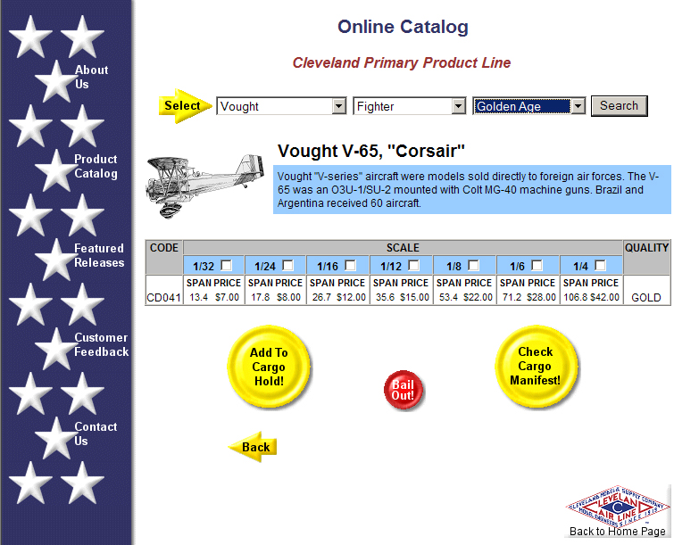 Cleveland Model of the Vought V-65 Export Version of the O2U Click to Enlarge You can buy the plans and patterns that will enable you to make this model right now. Click Here to go to the exact location on the Cleveland Website to get them. Vought V-65 Export Model at the Cleveland Site Click to Enlarge Click to go back and select another cover. | |||||||