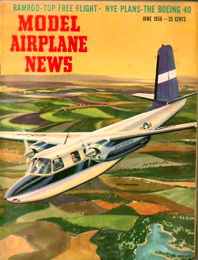 Model Airplane News June, 1956 Aero Commander L-26 "Mini Air Force One" Model Airplane News Cover Art for June, 1956 by Jo Kotula Click to Enlarge The Aero Commander L-26 is a twin engined high-wing monoplane with retractable undercarriage. It was built by the Aero Design and Engineering Company in the late 1940s. The aircraft was designed by Ted Smith who formed the Aero Design and Engineering Company to design and build the proposed aircraft after Douglas Aircraft declined the concept. The final configuration was completed in July 1946. The airplane accommodated up to five people.