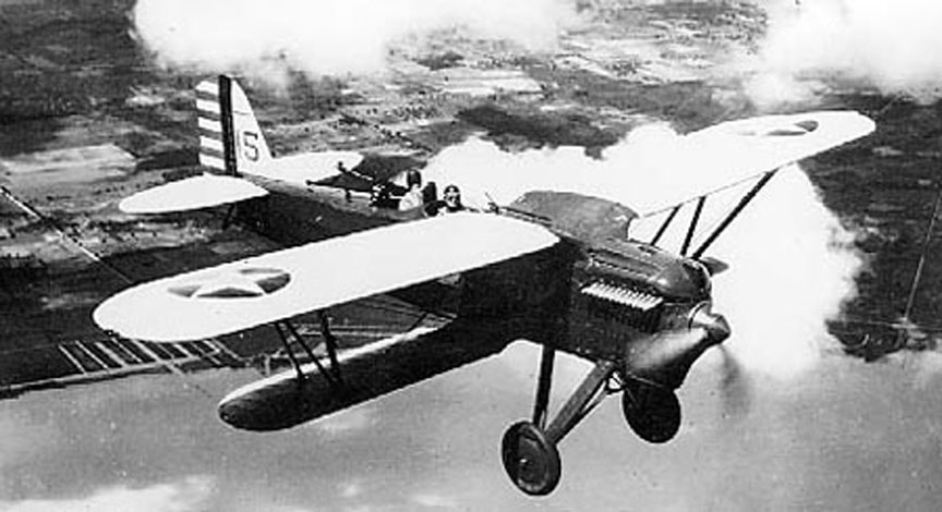 Berliner-Joyce P-16 Click to Enlarge In 1929, the Berliner-Joyce Aircraft Corporation, nominally a manufacturer of light civilian aircraft, designed a two-seat fighter for the United States Army Air Corps, designated XP-16. It had a metal structure with a fabric covering. It was a single-bay biplane of unequal span, with the wings forward-staggered. The lower wing was smaller than the upper and was mounted at the base of the fuselage. The upper wing was of gull wing configuration. An observer/gunner was located behind the pilot. The aircraft was powered by a 600 hp supercharged inline engine. After evaluation by the army, 25 aircraft were ordered, designated as YP-16s. The main difference with the production aircraft was the use of an unsupercharged engine, and a three-bladed propeller. Without the supercharger, performance at altitude was appreciably reduced although the aircraft had a greater endurance than contemporary single-seat pursuits Despite the gull-wing, pilots had poor visibility over the nose which contributed to service pilots having a propensity to nose-over on landing. All Berliner-Joyce PB-1s were withdrawn from active service in 1934, although a small number of aircraft continued in second line duties until 1940. It was eventually replaced by the Grumman FF-1. Click Here for more information about the Berliner-Joyce P-16. Here is the Cleveland model of the Berliner-Joyce P-16.