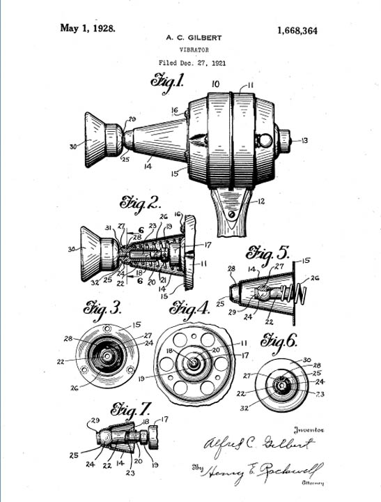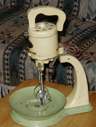 ![]() "ZERO" Drug Store Fan Cheap but Clever ![]() ![]() Nondescript "Eskimo" fan Bersted also made a "hassock" model that sat on the floor and circulated air. Here is a photo of the Cheesy Bersted fan (left) and a high-quality "Freshnd Aire" fan (right) -- the difference is readily apparent. ![]() Don't get too close to the Bersted fan.... Often, a mediocre "Drug Store Fan" can often fetch much higher prices than quality fans. I particularly like the first one because the letters in the word "ZERO" appears to be made of melting ice. The "Eskimo" is strictly "blah." What is a "fan" but a motor, a shaft and a propellor. Here is Big Al's clever repackaging of a fan as a kitchen mixer or blender: ![]() ![]() The "Eskimo" Blender It is hard not to see a "fan" in this appliance! Notice that it still has the original cord tag. And, thanks to our friend, Dick, we have photos of a Bersted Mixer that really shows the "fan" influence: ![]() ![]() ![]() The "Eskimo" Mixer Dick writes: "... I have a Bersted Food Mixer which was not pictured in your article. The metal label identifies it as an "Eskimo Mixer Model 450 Bersted Mfg. Co. Fostoria, Ohio" It has a wooden handle. The mixer head could swivel in for a small mixing bowl and out for a large one. As you can see, this one got lots of use. It belonged to my late wife's grandmother. I have recently donated it to the Sparks Heritage Museum, Sparks, NV. ..." After the mixer, it is not too far a step to envision the vibrator. In fact, it looks like Bersted knocked off the vibrator that was patented by A. C. Gilbert, the guy who gave us the Erector Set. The Eskimo Vibrator ![]() Patent for a "Vibrator" Click Photo to Enlarge It Check out our Web Page on Erector Sets We want to thank our friend Jim for sending us these photos -- note that the Eskimo Vibrator is new in its original box. Jim, tells us that he found it in his attic, untouched these many years. A Hair Dryer is just like a "fan" except that you put some resistance wires across the outlet to generate heat. Voilla! The Eskimo Hair dryer: ![]() ![]() The "Eskimo" Hair Dryer New With the Original Cord Tag ![]() Another "Bersted" Hair Dryer Yep, New With the Original Cord Tag Compare this with some of the quality hair dryers shown on our Miscellania Page. And, what is a knife sharpener but a motor shaft and a grindstone instead of a propellor... ![]() The "Eskimo" Knife Sharpener New With the Original Cord Tag Finally, here are some pictures of Bersted's low-budget clones of other appliances: ![]() "Tip-Toe" Iron From the Remnants of Yale & Towne Manufacturing Company ![]()