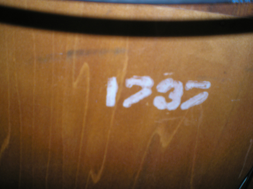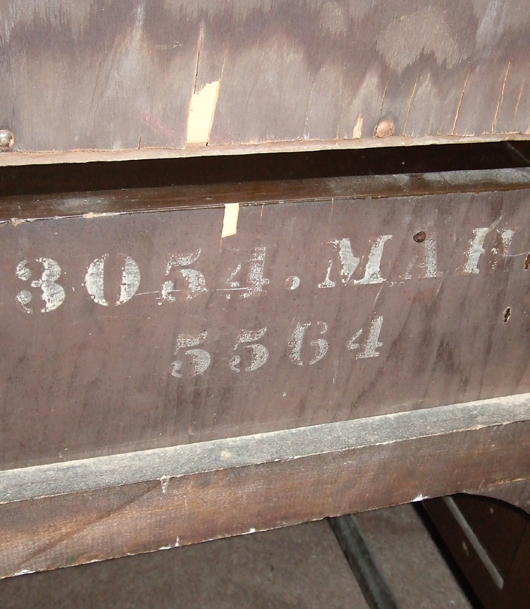 Cavalier Scandinavian Influence Stow-Away Chest Click to Enlarge And, we have more of those confusing serial number markings on the back that we have never been able to decipher... Here are some photos of a Cavalier Stow-Away that was probably made in the 1940s. They were sent in by our reader Jan who says: