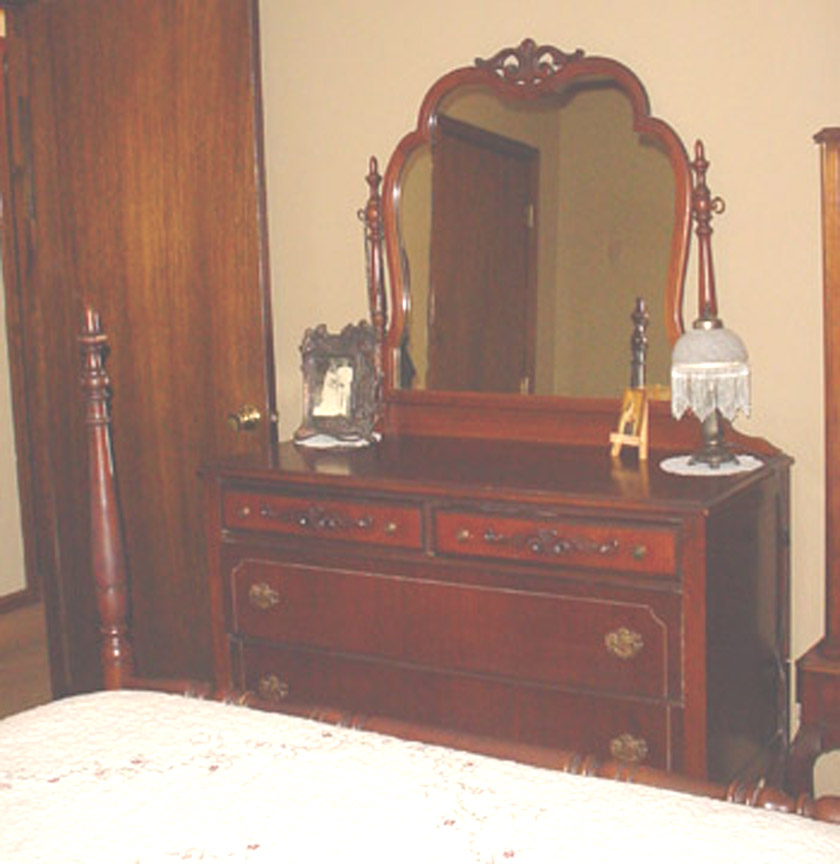 Here is an early set with a four-poster bed! (It may have been from the Natchez series discussed below.) Thanks to our reader Pam, we have the following nice photos: