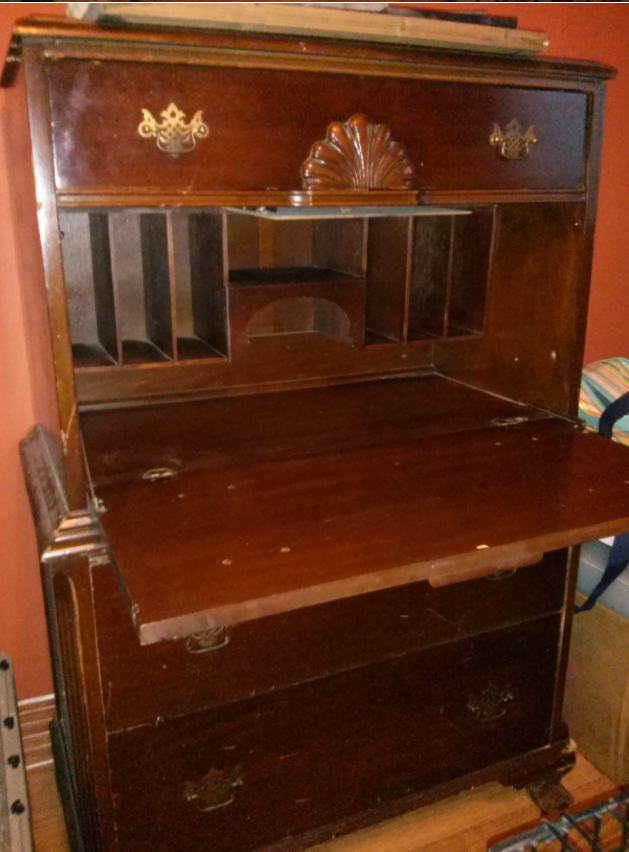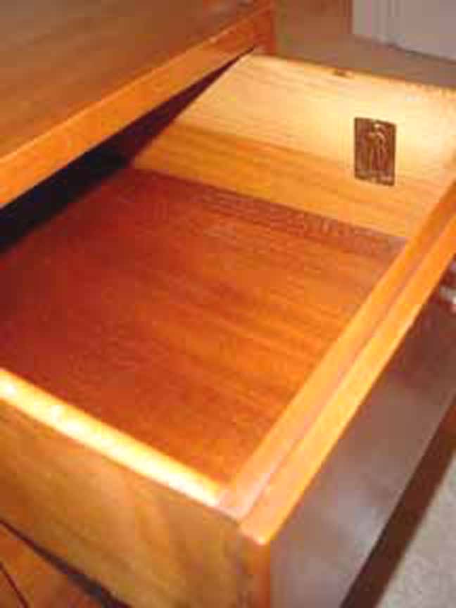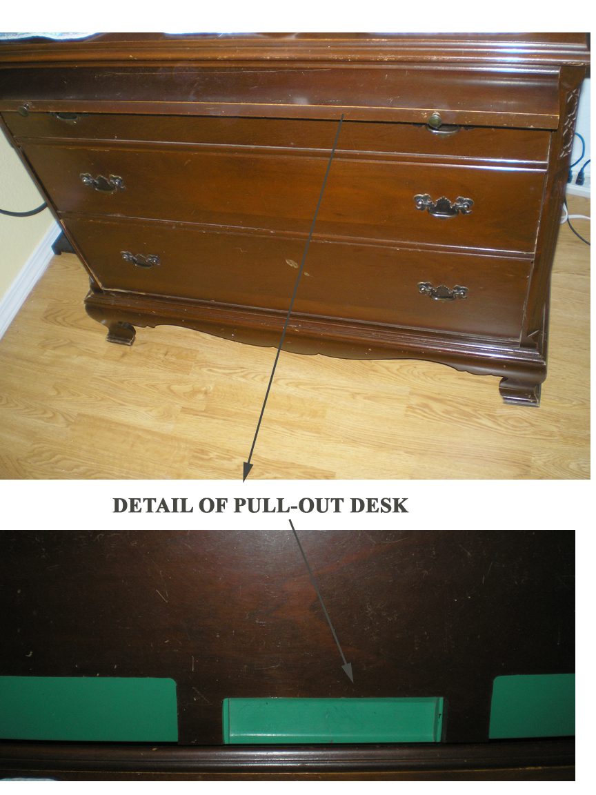 Maker's Mark and Serial Number Click to Enlarge Here is a Write-Away chest sent in by our friend Leslie in California. She writes: "... I just purchased this dresser/desk from a relative for $60.00 When I found your website online I figured out that I got a fantastic deal on this wonderful piece of furniture. It was just sitting in an extra room of their home with a bunch of papers on top of it. I just thought it would be great in my daughters room because she just got a laptop and it doubles as a desk! Here are some photos. ..."