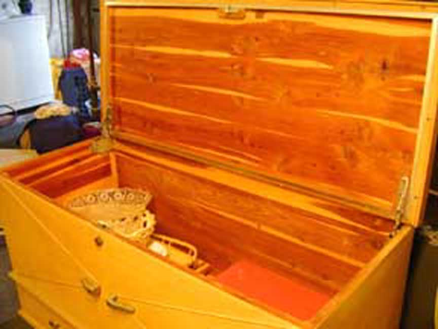 Drawer Details, Serial Number Click to Enlarge Here are some photos of a more traditional Chest -- there is no veneer over the Cedar.