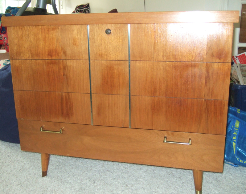Our reader Victoria sent us these photos of a 1950s Cavalier chest that has an unusual shape. We have never seen one of these before. The finish could use a little TLC, but this is a very striking Mod-century Modern piece.