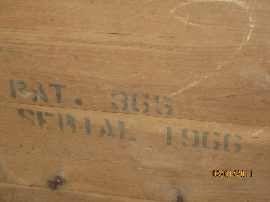 A great restoration job! Model 123 Pattern No. 4095 Click to Enlarge Here are some photos sent in by John in Indiana. The following is stamped on the bottom: "Chest 137 Serial 1151".