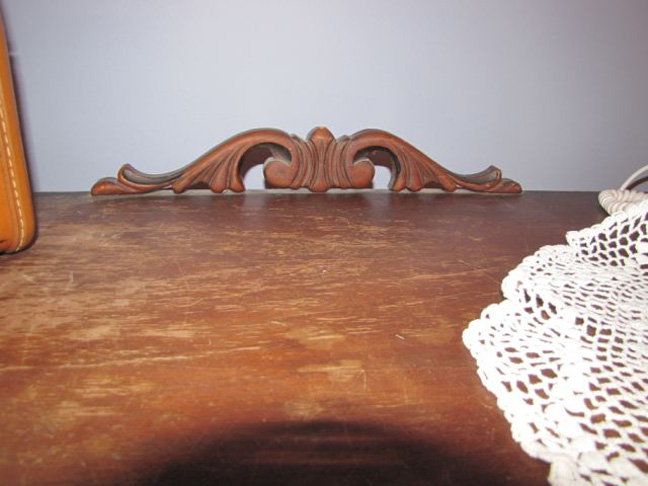 Barry's Cavalier Cedar Chest Probably Mid-1930s Click to Enlarge Our best guess is that this is from the mid-1930s, judging mainly by its brass Cavalier badge and the paper on the inside. This is a great find! To locate the dowel hole, clamp a piece of scrap wood onto the portion of the leg still on the chest. Drive a finish nail into the center of the piece to be attached. Slide the part on the stich until it makes contact with the upper part. give it a tap with a mallet and it will make a mark where the upper dowel is to go. Use the stick to guide the drill on both piceces. These pictures were sent in by our reader Anthony. He writes: "... My mom had gotten this chest from her parents and now has been passed down to me. she thinks they received it as a wedding gift in 1945. ..."