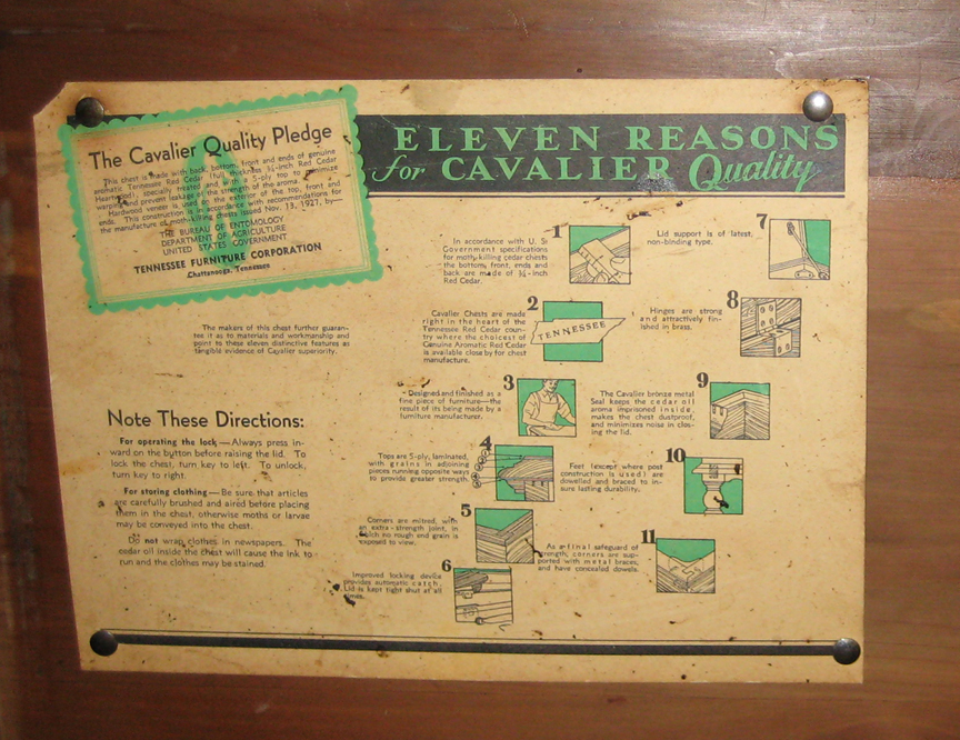 Bob's Cavalier Cedar Chest Click to Enlarge Here are some photos of a Cavalier Chest from the 1950s.