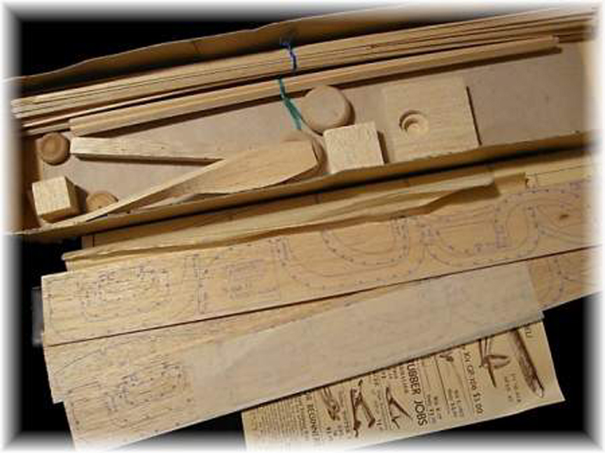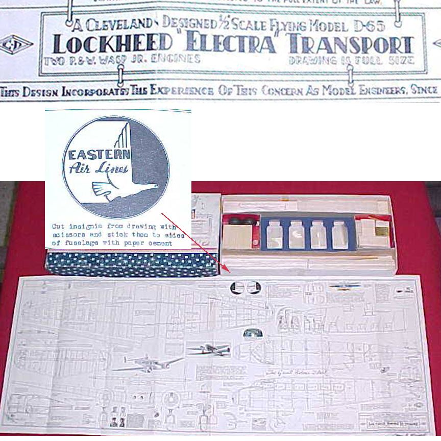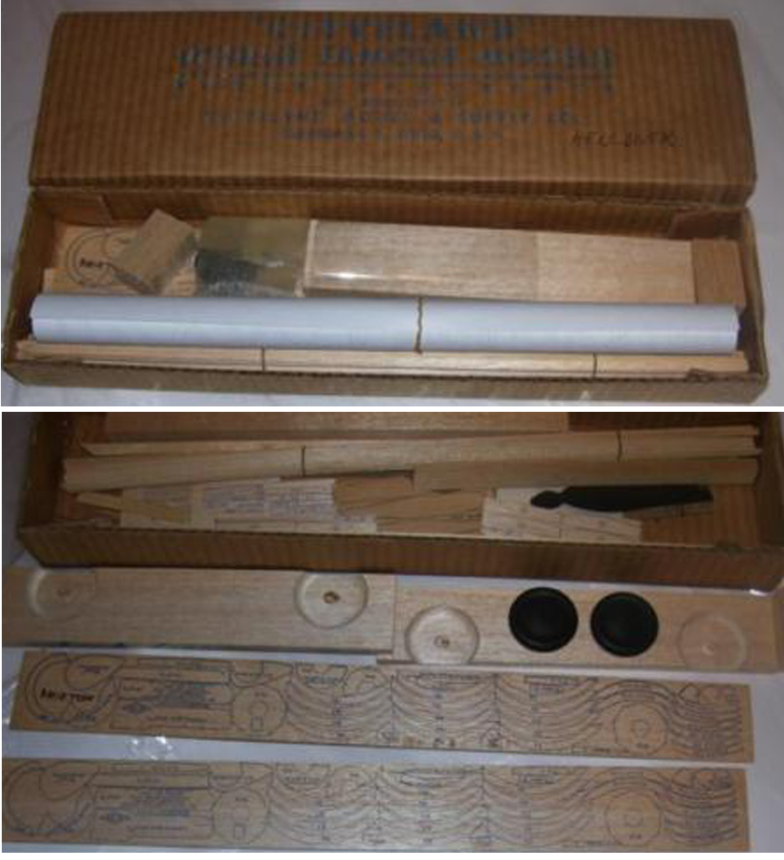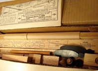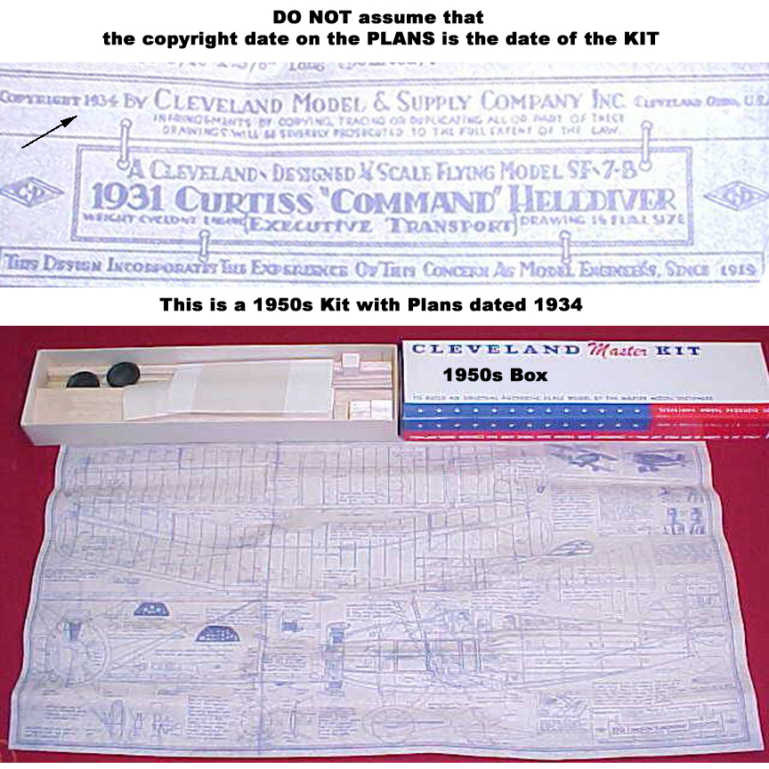 This kit also illustrates clearly that the copyright date on the plans is NOT the actual date of the kit. The plans are properlly copyrighted in 1934, but the box indicates that the kit is from the 1950s.