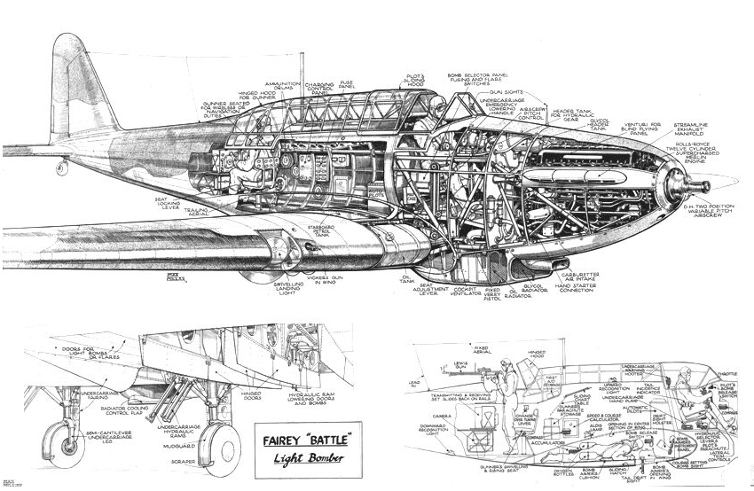 Click here for a short video about the restoration of a Fairey "Battle". Here is a video of a large scale radio-controlled model of the Fairey "Battle":