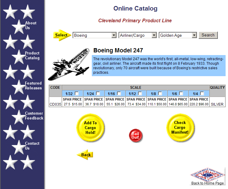 Cleveland offered a kit for the 247, but two engine aircraft were generally beyond the capabilities of children. It is reported that the Cleveland 247 is a good subject for free-flight and radio control modeling.
