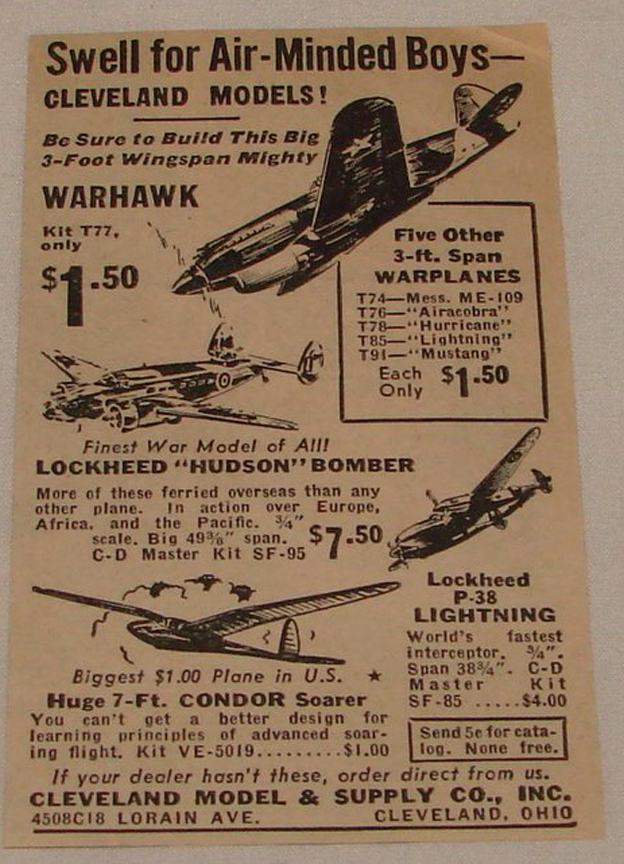 This is the page about Cleveland Model Airplane Kits. If this is not what you want, click on a Button to go to another page.