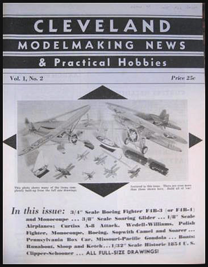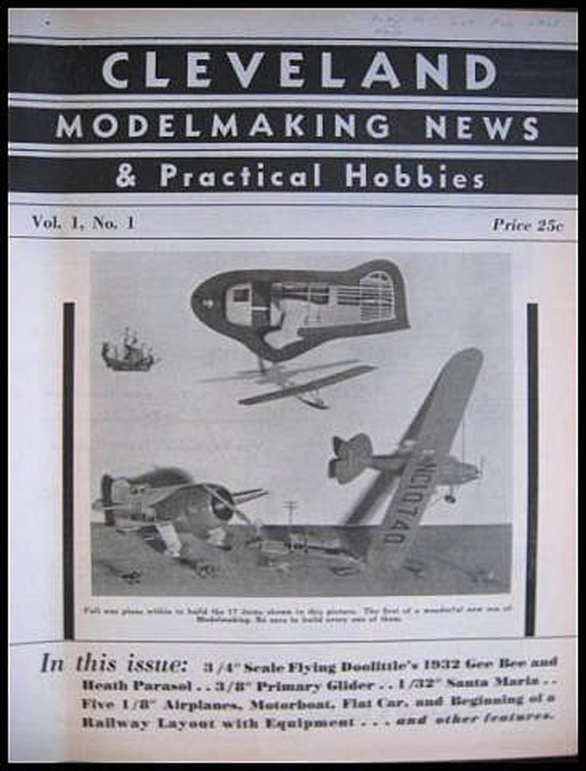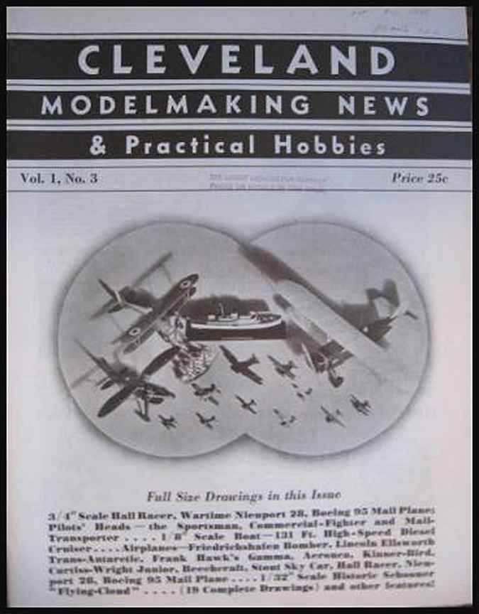 The Cleveland Company had ist own publication for about one year, back in 1932. It was called the Cleveland Modelmaking News and it featured plans for car, plane and ship models as well as building and painting tips. Only six issues were published. The first three are quite interesting because the cover shows a photograph of all the models that could be built from the plans contained inside. This must have whetted the American Boy's appetite. The next three issues look more like Model Airplane News in that they feature a drawing of a real airplane on the cover. Here are the six covers: