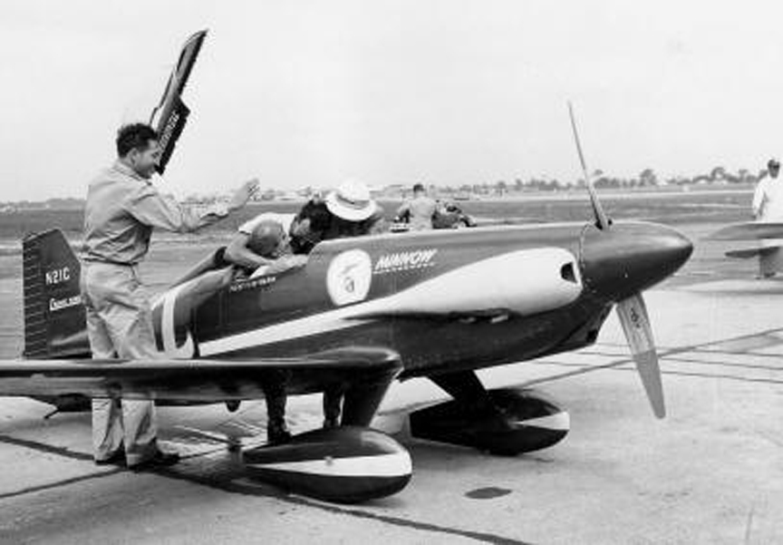 The Minnow (license number N22C) was built by a group of Lockheed employees and piloted to victory in 1848 by Herman "Fish" Salmon. "Fish" started work at Lockheed in 1940 ferrying Hudsons to Montreal for the Royal Air Force. In 1945, he was transferred to the engineering test piloting where he dive tested the P-80 Shooting Star, the XF-90 penetration fighter prototype, and the F-94C Starfire. He certification tested two of the models of the Constellation for the Civil Aeronautics Administration. He made the first flights of such aircraft as the P-3 Orion, YF-104A Starfighter, and the XFV-1 tailsitter, which was named in his honor.