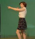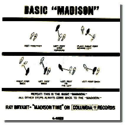Instructional videos by Mike and Tina Foley of Head Over Heels Dance The Hand Jive was a phenomenon in the summer of 1958 -- I was 14 and it seemed to be everywhere. My research indicates that it was in the Top Ten for 16 weeks -- to remain popular with fickle teenagers for almost four months was nothing short of astounding! However, to understand the Hand Jive properly, we must delve into the career of John Velioties a.k.a Johnny Otis Born on Dec 28, 1921 in Vallejo, CA as Johnny Veliotes. Johnny Otis has modeled an amazing number of contrasting musical hats over a career spanning more than half a century. Bandleader, record producer, talent scout, label owner, nightclub impresario, disc jockey, TV variety show host, author, R&B pioneer, rock & roll star -- Otis has answered to all those descriptions and quite a few more. Not bad for a Greek-American who loved jazz and R&B so fervently that he adopted the African-American culture as his own. California-born John Veliotes changed his name to the blacker-sounding Otis when he was in his teens. Drums were his first passion -- he spent time behind the traps with the Oakland-based orchestra of Count Otis Matthews and kept time for various Midwestern swing outfits before settling in Los Angeles during the mid-'40s and joining Harlan Leonard's Rockets, then resident at the Club Alabam. It wasn't long before the Alabam's owner entreated Otis to assemble his own orchestra for house-band duties. The group's 1945 debut sides for Excelsior were solidly in the big-band jazz vein and included an arrangement of the moody "Harlem Nocturne" that sold well. The Otis outfit continued to record for Excelsior through 1947 (one date featured Big Jay McNeely on sax), but his influence on L.A.'s R&B scene soared exponentially when he and partner Bardu Ali opened the Barrelhouse Club in Watts. R&B replaced jazz in Otis's heart; he pared the big band down and discovered young talent such as the Robins, vocalists Mel Walker and Little Esther Phillips, and guitarist Pete Lewis that would serve him well in years to come. Otis signed with Newark, NJ-based Savoy Records in 1949, and the R&B hits came in droves: "Double Crossing Blues," "Mistrustin' Blues," and "Cupid's Boogie" all hit number one that year (in all, Otis scored ten Top Ten smashes that year alone!); "Gee Baby," "Mambo Boogie," and "All Nite Long" lit the lamp in 1951, and "Sunset to Dawn" capped his amazing run in 1952 (vocals were shared by Esther, Walker, and other members of the group). ![]() In recent years, Otis has been operating a California health-food emporium. If blues boasts a renaissance man amongst its ranks, Johnny Otis surely fills that bill. Click here to hear the song Willie and the Hand Jive and to read the words and music. This is a .WAV file, so it does not really require broadband internet service Click Here to see the Johnny Otis Show actually doing the Hand Jive. Click here to watch teens from American Bandstand doing their own version of the Hand Jive. The dance consists of various hand movements (Slap thighs, cross palms, pound fists, touch elbows, hitch-hike). It is incredibly easy to learn, since it is repeated without change over six choruses of the song. No wonder EVERYONE in 1958 could do the Hand Jive! In the class, Ellen and Marc added footwork to the Hand Jive. They formed the group into two circles which rotated in opposite directions. I really don't think that words are going to describe this, but you might get a good idea from the pictures of what is going on here. This was a whole lot of fun! The gang looks forward to performing this (and getting you to join in...) at a dance soon. ![]() ![]() ![]() ![]() ![]() Photo Credit: Vern Hensley The Madison is an amusing line dance that originated in the late 1950's. According to Lance Benishek (dance historian), "The Madison probably started in Chicago, although it may have been Detroit or Cleveland. The Baltimore Colts learned it in Cleveland and brought it to Baltimore in 1959." It is danced to the Ray Bryant tune, The Madison Time, with calls for the particular dance sequences provided by Eddie Morrison. Eddie was a Baltimore disc jockey who started calling the steps live on the air. On the other hand, here is a website that claims Columbus, Ohio as the home of the Madison. ![]() Basic Step for the Madison Click to Enlarge Based on a six count chorus step, The Madison contains several dance sequences which make playful references to 1950s and 1960s Television shows (e.g. The Rifleman) sports stars (e.g. Wilt Chamberlain) and performers (e.g. Jackie Gleason) The Madison can be seen in the 1988 movie "Hairspray", and the song most used nowadays is the version on the soundtrack of that movie. In Baltimore, the Madison was done to generic music with the DJ calling the figures. There was one record made which included calls for some of the more common figures on the record. One local radio DJ, Jack Gail, came out with a comedy version including one call to hold both feet up off the ground at the same time. Here is a Video of the cast of Hairspray doing the Madison. Here is a video of the Kids on the Buddy deane Show doing the Madison. [ Compared to Madison Time, considerably fewer calls are used in this version.] More Madison Sources: