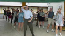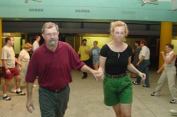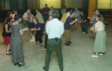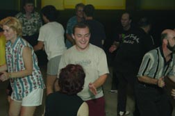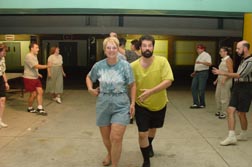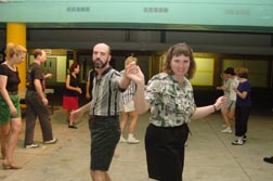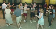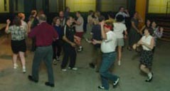 The opposite line does the mirror image of this. Boys in one line, girls in the other. At the top of the next bar, the persons on each end join in closed position and execute twirls, promenades, etc, etc as they proceed to the far end of the lines where they separate and become part of the line again. With each bar, the line advances so that a new couple forms and begins the promenade. Here are our friends Sue and Gary teaching the Stroll while the kids on "Reston Bandstand" perform it. Here are some pictures of Ellen and Marc's class doing The Stroll: ![]() ![]() ![]() ![]() ![]() ![]() Photo Credit: Vern Hensley The Jitterbug Stroll is a swing line dance choreographed in 1992 by Ryan Francois, a Lindy Hop dancer and teacher. It is usually danced to swing music with 12 bar blues structure such as Woody Herman's "Woodchopper's Ball" or Steven Mitchell's "The Jitterbug Stroll", a modern song created for this choreography. The dance is very popular among Lindy Hoppers, like the Shim Sham. Don't confuse "The Stroll" with "The Jitterbug Stroll" as shown in this video of our friends Pam and Steve Springer and their crew "Hub City Lindy Hop":