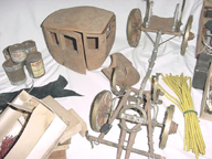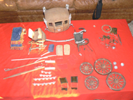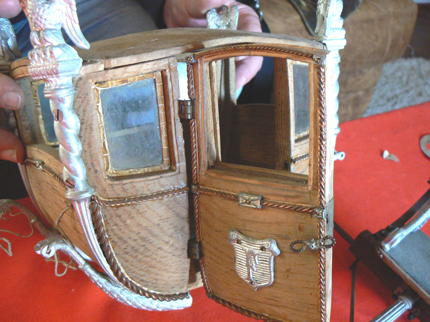 Partially Constructed Napoleonic Coaches Click to Enlarge Occasionally, estate sales offer coaches in partial stages of completion. My guess is that if a boy started this project, he may not have finished it, but he would never forget it and save the pieces forever. Thanks to our friend and real-live Guildsman Jeff, we have obtained pictures of some coaches under construction. This offers a good chance to show some of the work that was done alongside the actual plans.