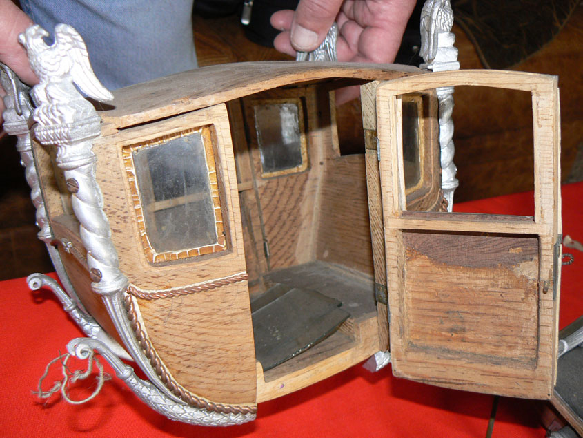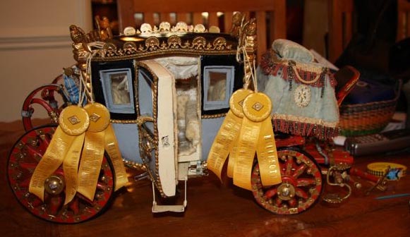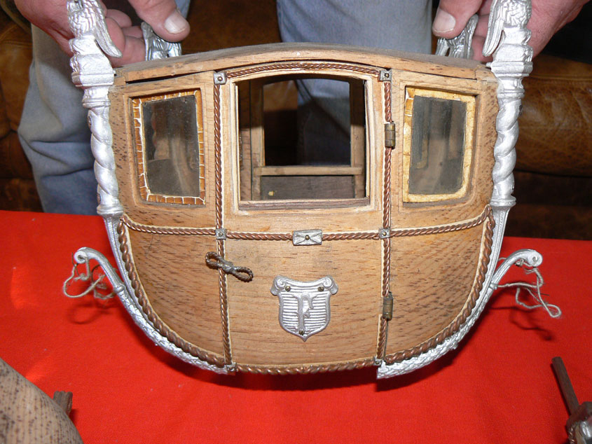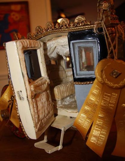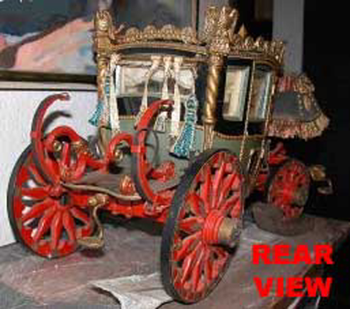 ". ..There were awards in "Woodcraft", "Trimcraft", "Metalcraft" and "Paintcraft" for the participant. I never competed in the coach competition but this letter tells me that each coach was judged in at least those four categories and the ones representing better craftsmanship were awarded ribbons.... Recently (November, 2010) we got these astounding photos from our reader Rick, who says: "... Enclosed are pictures of my granddads handywork. He was so talented with carving and I want everyone to enjoy his work..." Behold the Masterpiece!