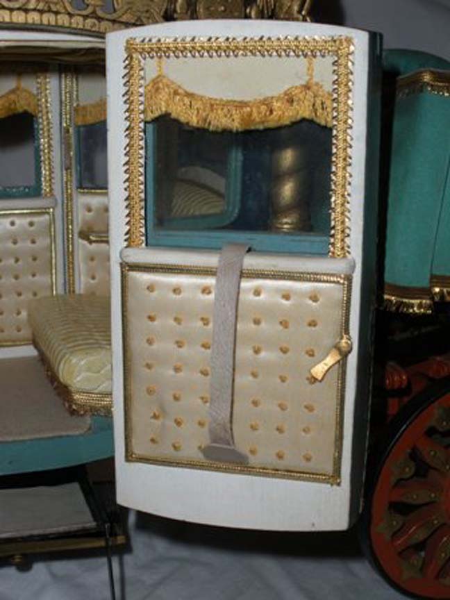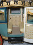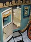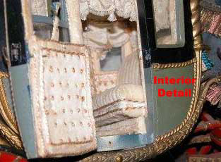 The Interior and the Driver's Stage The upholstery was tufted and the windows had to work! All the braids had to be woven, mixing thread and gold wire