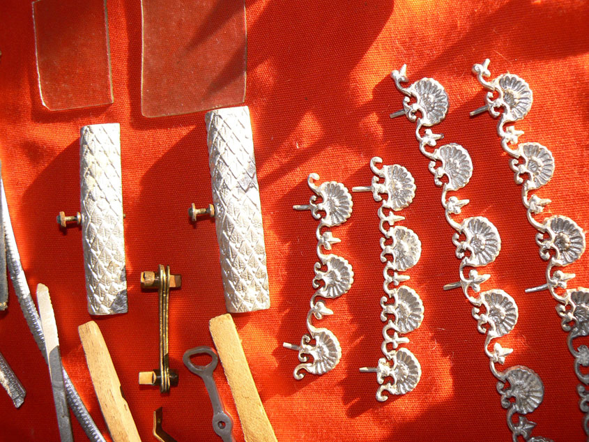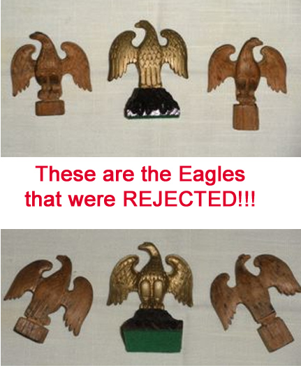 Upholstery and Working Door Locks Click to Enlarge I think that Rick provides the final word to Jeff about hand-carving those eagles: "...Next I would like you to see a closeup of some of the eagles (perhaps as many as 50 were made) that were rejected by granddad for the final finished Fischer coach. Notice the pencil marks on the one wing that he used as a guide..."