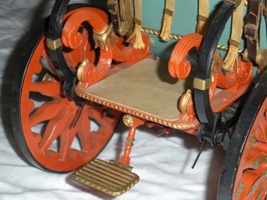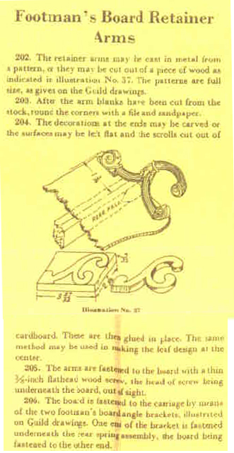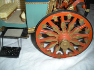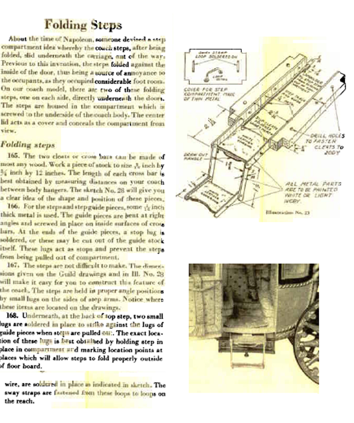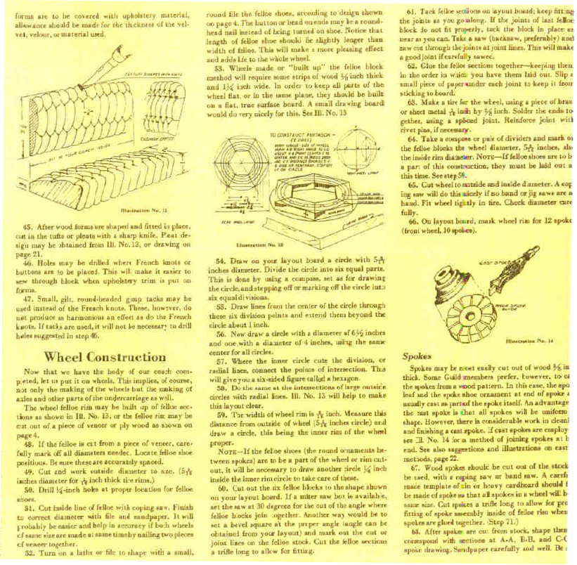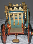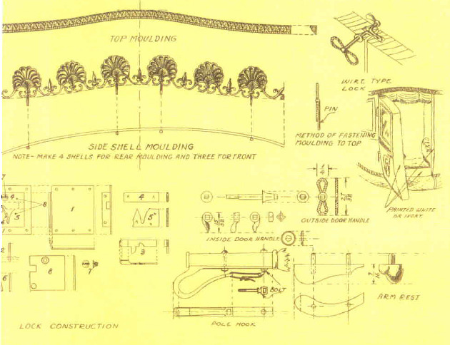 Model and Plan Specifications for Wheels and Ornament on the Footman's Board Click to Enlarge There were two prizes for every state and a grand national winner. The coach that I found won second prize in Wyoming, so you can get an idea of how intense the competition was. The shipping box was itself a wonder of craftsmanship; no matter how good the coach was, it had to arrive intact in Detroit before it could be judged.