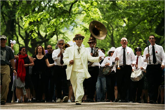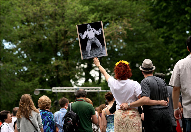 Frankie Manning has passed away but his spirit lingers on. Here is an article that appeared in the New York Times on May 22, 2009. I don't know if it was "Saints" that marched behind Frankie's funeral band, but we were proud to be "in that number," something that I will never forget. Honoring the Man Who Helped Make the Lindy Hop"A-one, a-two, a-you know what to do. " And they certainly did: they danced the Lindy hop, and danced again. Right there in the sacred aisles of the Fifth Avenue Presbyterian Church in Manhattan. They were incited by a series of speakers who repeated this signature catch phrase of the dance legend Frankie Manning during a rollicking three-hour memorial service in his honor Friday, attended by 1,400 Lindy-crazed acolytes who had journeyed there from 33 countries. Michael Appleton for The New York Times Rhythm, not sorrow, was the order of the day at a memorial held on Friday for the dance legend Frankie Manning at the Fifth Avenue Presbyterian in Manhattan. Then the celebrants erupted through the church doors onto Fifth Avenue in a New Orleans-style processional — clapping, dancing and sporting umbrellas in the May sun as they were led by a jazz band in singing "Down by the Riverside" and "When the Saints Go Marching In." They ended up, still sashaying, by the Naumburg Bandshell in Central Park for an afternoon of Lindy competitions. ![]() Michael Appleton for The New York Times A procession was held afterward through Central Park. The memorial was the centerpiece of a five-day celebration of the life of Mr. Manning, who died in April at the age of 94. A proselytizer, teacher and choreographer, Mr. Manning was called the Ambassador of the Lindy Hop and the Master of Swing. He went from the Depression-era Savoy Ballroom in Harlem to Hollywood and Broadway, where he shared a Tony Award in 1989 for best choreography in "Black and Blue." ![]() Michael Appleton for The New York Times Mr. Manning’s photograph was held aloft at the Central Park celebration. "Frankie was the living symbol of the Lindy hop," said Marv Kellerman, 62, a retired teacher from Kenosha, Wis., who arrived Thursday for the events with a clutch of avid Lindy hoppers from America’s Dairyland. The five-day remembrance — for which 2,100 people registered, paying $199 for scheduled events — was originally intended as a 95th birthday celebration for Mr. Manning, whose death reconfigured the gathering as an homage to his life. Several spoke to Mr. Manning as if he were present. "I want to say hello to Frankie and not goodbye," said the producer George Avakian. And Deborah Manning, his daughter-in-law, said, "He’s up there dancing and singing." At times, irrepressible Lindyphiles danced in the church aisles. The memorial was punctuated by laughter, applause and even cheers, not to mention syncopated hand-clapping and choruses of amens. "If you want to get up and dance — dance," said the Rev. Dr. Scott Black Johnston, the senior pastor of the church. "This is a temple of celebration." Soon he took his own advice — Lindy-ing in the pulpit with some of the revelers. Mr. Manning "was a living legend but he never acted like one," said Lennart Westerlund, a Swedish Lindy popularizer who met Mr. Manning 25 years ago. Mr. Manning first greeted him with a dinner of meatballs adorned with tiny Swedish flags. Mr. Manning was nicknamed "Musclehead" for his powerfully quick acrobatic style, as he hurled his swing partners through show-stopping athletic sequences — and sometimes through space, in what was called his "aerial" or "air step." Mr. Manning appeared in such Hollywood musicals as "Radio City Revels" (1938) and "Hellzapoppin’ " (1941), before serving in the Army in World War II. After the Lindy craze crashed, Mr. Manning found employment as a post office clerk. But by the time he retired in 1986, a new generation of American and European enthusiasts had rediscovered not only the Lindy, but also Mr. Manning. He soon became a dapper, charismatic Pied Piper of the Lindy, which he described as "a series of three-minute romances," insisting that it was a social leveler that swept aside ethnic, class and gender traditions. Many said Mr. Manning’s stamina hardly attenuated with age. "The first time you saw him, he appeared to be an old man," recalled Silvia Palazzolo, 35, an accountant from Genoa, Italy. "Then the music started and he was 18 years old." In 1999, Mr. Manning danced with 85 successive partners at the Roseland Ballroom to celebrate his 85th birthday. It was satisfying, said Alan Sugarman, a producer of that event, since in 1935 Mr. Manning had been excluded from the hall because he was black.. "In 1999, Roseland apologized and put Frankie’s dance shoes on their wall of fame," he said. During the balmy afternoon Lindy hoppers at the bandshell partied on, continuing the five-day celebration, featuring 15 bands and some 70 events. Many described the Lindy as seductive. Hazel Squire, 46, an information-technology manager from London, said, "I dance as much as possible — one or two times a week." Lisa Erickson, 31, a food product developer from Stockholm who had flown in for the events with a Swedish contingent of 40 Lindy lovers, said: "It’s not just the dance, It’s the music — the people. The whole atmosphere is a joy." Biography of Frankie Manning(This biography of Frankie Manning is taken from Margaret Batiuchok's Masters thesis on Lindy Hop on the US Swing Dance Server) Frank Manning was one of Whitey's Lindy Hoppers from 1936 to 1941. Frank began dancing as a child, and by the time he was sixteen he was winning contests and almost professional. He came in third place in the first Harvest Moon Ball in 1936, and second place in the one the following year. He became Whitey's right hand man and chief choreographer and with Whitey's group toured the world and appeared in the films Hellzapoppin'' and the Marx Brothers' A Day at the Races in the 1940's. During the war he put to