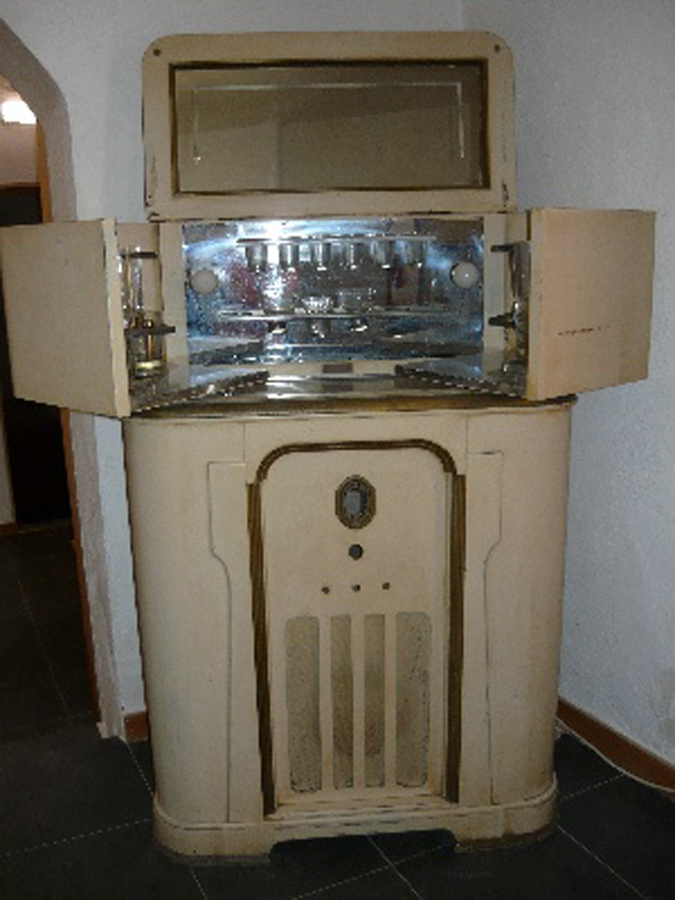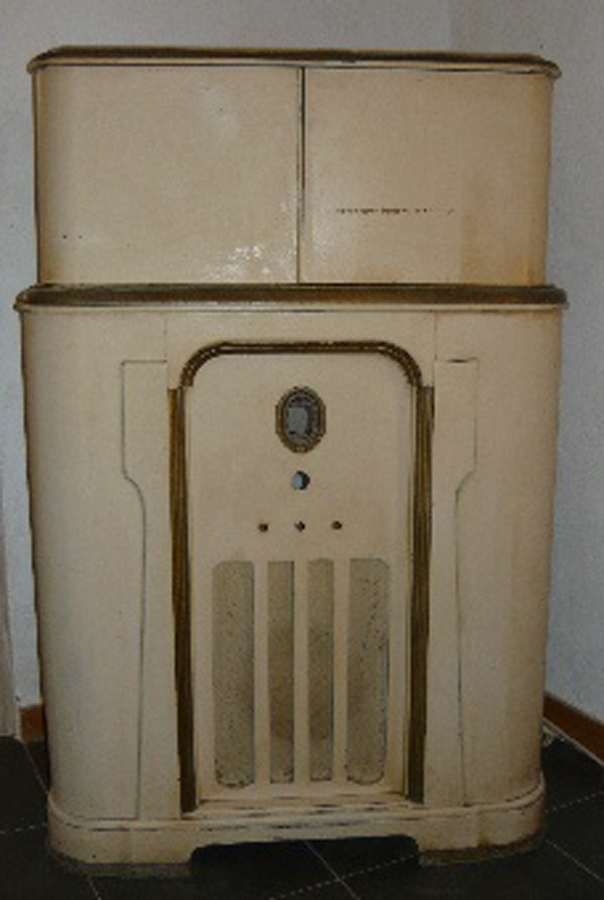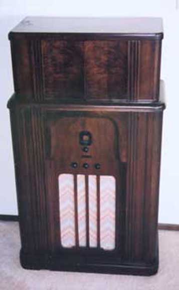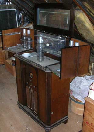 ![]() History's First Wireless Remote The Philco Mystery Control --it worked just like a telephone dial You could activate station presets, change the volume,and turn the set on and off Read about it in the August 1938 issue of Popular Mechanics Click to Enlarge The set works very nicely inside its Liquor Locker! This is what the bar looks like when it is closed.