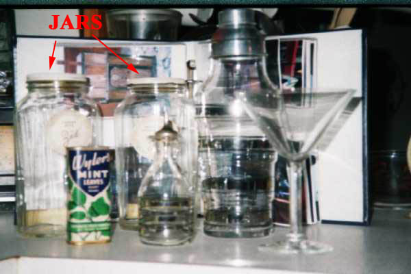 ![]() The Glassware (LEFT) More Glassware, including Jars of Bar Snacks (RIGHT)Design Patent D-111,034 for the jars Click to Enlarge Here is some of the glassware that came with the bar. Of note are the bottles (maked "Zed") that originally held bar snacks. They held a pound of cheese bits; the price (marked in crayon on the top) was 37 cents. My inflation indices put these back to the 1940s. You can also see the cocktail shaker and the little hypodermic-like vermouth dispenser. I was very surprised to find the design patent for these snack jars during my research on another topic. It just shows that you can patent almost anything. Dealing with the RadioThe exposure to humidity had caused considerable damage to the radio. I examined the set closely and determined that the filter capacitors were totally shot and would have to be completely re-built, a time consuming process. Two of the tubes were broken, meaning a number of trips to flea markets. The chassis was rusted, meaning that most of the solder connections would have to be gone over. Uh Huh... 6 months work and I would have --- Ta Da! --- a nonselective AM radio... This is a five tube radio. I could not find a Philco model number, although the chassis bears the number 122842. The Tube lineup is: