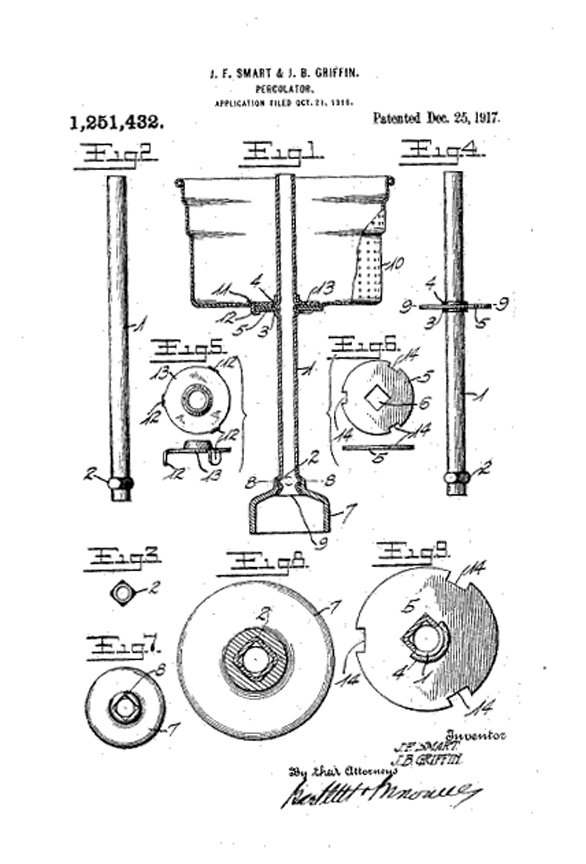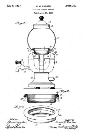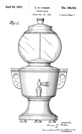 Simon Farber's Artistic design for the Coffee Robot Click here if you want to learn how to get free Patent Drawings We are indebted to "Acme Ron" for sending us this wonderful photo of a brand new "never-been-used" Farber Coffee Robot. Here is the original shipping tag!