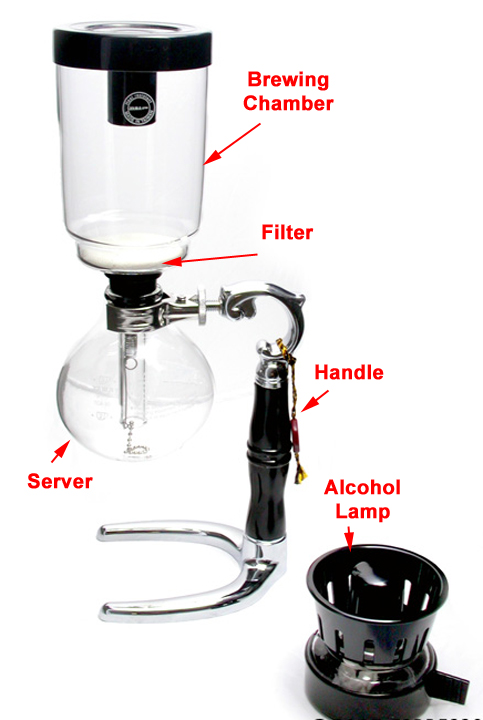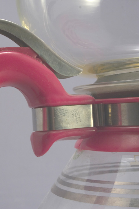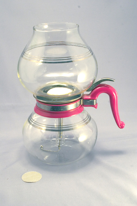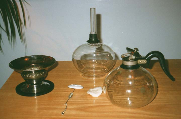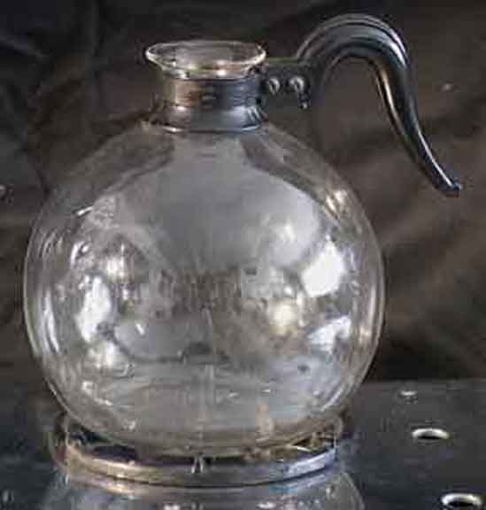 Silex "Silver Handle" (Left to Right) The silver handle, side view (the top opens) The silver handle (top view) The Yama Syphon Brewer "Reconstructed" use of the Silver Handl e Click to Enlarge | |||||||