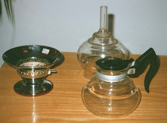 The Silex 10 Cup Coffee Maker (left) Parts (right) Ready to Brew VACUUM METHOD NOT Automatic Click to Enlarge | |||||||