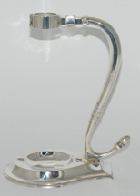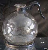 The Brochure We have reproduced the instruction booklet with high resolution Click to Enlarge Here is an interesting "fragment" of a Silex set that was sent to us by our reader Adam in London. It is an elegant silver handle that once held the server (and brewing chamber) for a Silex Vacuum brewer. Since the glass was likely to break, the silver handle can be opened to replace the server. Also, the server can be removed for cleaning without exposing the handle to tarnishing soaps. This is a very clever device that has its roots in 17th century "Syphon" brewers that use the vacuum principle. For this, an alcohol lamp provides the heat source. Currently, the "Yama Syphon Brewer" is being sold as a working replica of the antique "syphons". I have one and it is always an entertainment to make coffee at the table with it. I can see a rig like the Yama using the silver handle being used to make demi-tasse at a fancy dinner.
