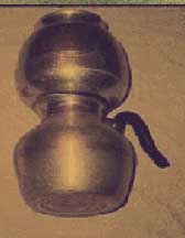 This is one of the more popular collectible coffee brewers. The thing works very well, especially if you have to brew a large amount (like 15 cups...) in a short time. The distinctive curved handles and gently bulging shape are very attractive. The device uses an internal metal filter that is very well-designed. I have seen these at $100 and over. I date this from before WWII. The manufacturer's information states: West Bend Aluminum Company West Bend, Wisconsin Click here to look at another type of collectible, or keep on scrolling for more Coffee devices. | |||||||