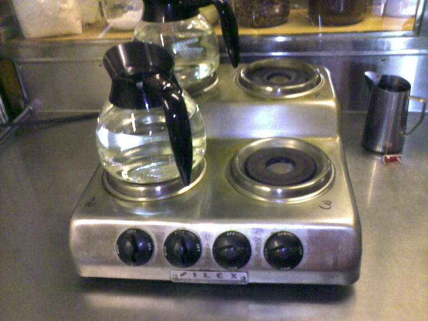 Details of the Silex Commercial Service (left) Manufacturer's Plate (middle) Closeup of one Server (right) The Original Box!!! Woolcott's Patent 1,983,209 for the Silex CommercialSystem Click to Enlarge and Rotate Click Here to learn how to get free Patent Drawings Here is a picture of a three burner Silex set that was sent in by our reader John. He writes that it is still in service at Kortman's Restaurant, located in Rogers City a small town in Michigan. ![]() The 3 Burner Silex at Kortmans While we are looking at commercial coffee-makers, you should see some of the beauties that have been restored by our friend Eric: