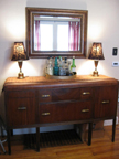 Another Lucky Find: This mahogany mirror was included in the pile with the Gate leg Table and the Rocker. This was a fairly straightforward restoration, although I had to use an epoxy-based wood filler to repair some structural damage. It makes a Wonderful hall mirror. Click here to look at another type of collectible, or keep on scrolling for more Furniture. | |||||||