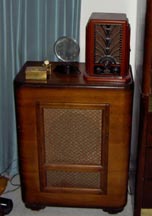 ![]() Old and New Entertainment Electronics Click to enlarge either photo Here is a picture of the Storytone piano at the 1939 World's Fair as well as a Storytone in Paul's home. This is an extremely rare and historically important instrument. The Storytone piano was built in 1939 in a joint venture between Story and Clark and RCA - the piano has normal strings and action but no soundboard - the sound is amplified by pickups and a speaker system making it the world's first practical electric piano. The sound is very beautiful considering its design during the infancy of amplified instruments. The Storytone Piano was made famous by artist Earl Hines. Check out our Vintage Television Page to see photos of the matching Television (The RCA TRK-9) that went with the Storytone Piano to make the "complete" home entertainment center of the late 1930s.