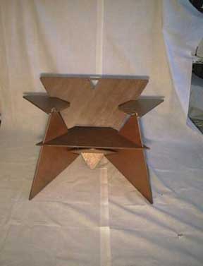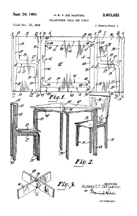 Jigsaw Furniture A Table and Two Chairs for Less Than $50 DeMartini Jigsaw Table Patent No. 2,653,652 Click to Enlarge Click here if you want to learn how to get Free Patent Drawings You can beat IKEA -- all you need is a jigsaw, a drill and one sheet of plywood -- just lay out the pattern shown above, cut and assemble. You might have to do a little sanding and staining, but who's going to complain about a table and two chairs for less than $50 - even less if you use utility plywood and paint it a solid color. Click here to look at another type of collectible, or keep on scrolling for more Furniture. | |||||||
