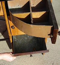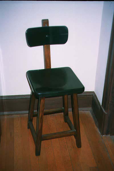 I bought this kitchen chair in Frederick, Maryland for about $5. It was painted red and white. When I got it down to the bare wood, it appeared that this was the original color scheme. This has lines that remind me of stuff by Frank Lloyd Wright. I don't have any more provenance, but I really like it! Click here to look at another type of collectible, or keep on scrolling for more Furniture. | |||||||