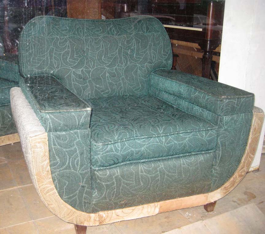 We saw this Deco parlor set in Fells Point in October of 2008. There was a red chair and a sofa in the set as well: