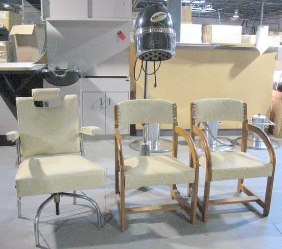Manicurist Table and Chairs That's a 1940s Helene Curtis Hair Dryer behind the chairs Click to enlarge.. Recently, one of our readers sent us some photos of another Modecraft item, most likely a stylist's cabinet:  '