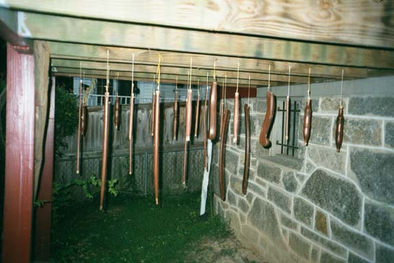 Windsor Rocker, Staining and Completion (left) Staining the Pieces (looks like "salami", huh?) (right) The Final Product Click to Enlarge | |||||||