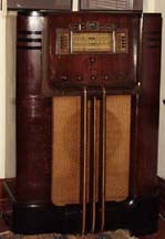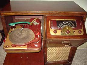 Click here to look at another type of collectible, or keep on scrolling for more Radios. RCA K-60 Console Radio [ca 193]We saw this radio at Mamie's an "Old-Timey" restaurant in Aberdeen, Maryland. The place serves lots of good old American cooking at low prices. A decidedly nice place to visit, made even better by a fairly large display of artifacts from the 1950s.